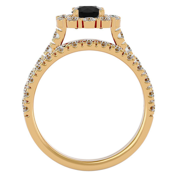 2 Carat Halo Black Moissanite Bridal Set In 14 Karat Yellow Gold