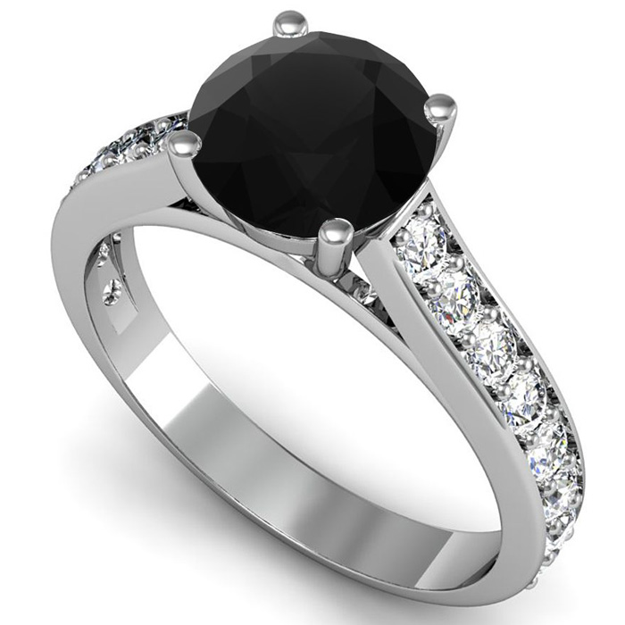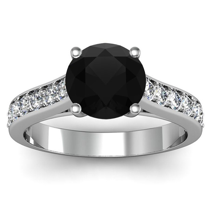 2 Carat Round Shape Black Moissanite Engagement Ring In 14 Karat White Gold