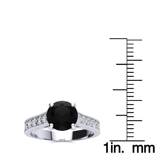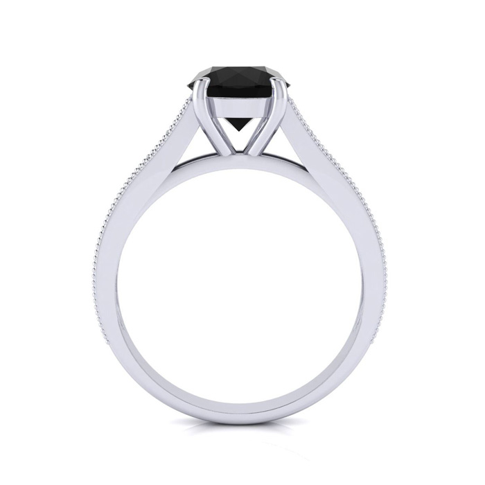 2 Carat Round Shape Black Moissanite Engagement Ring In 14 Karat White Gold