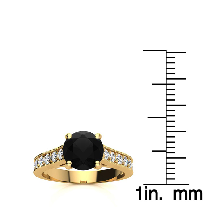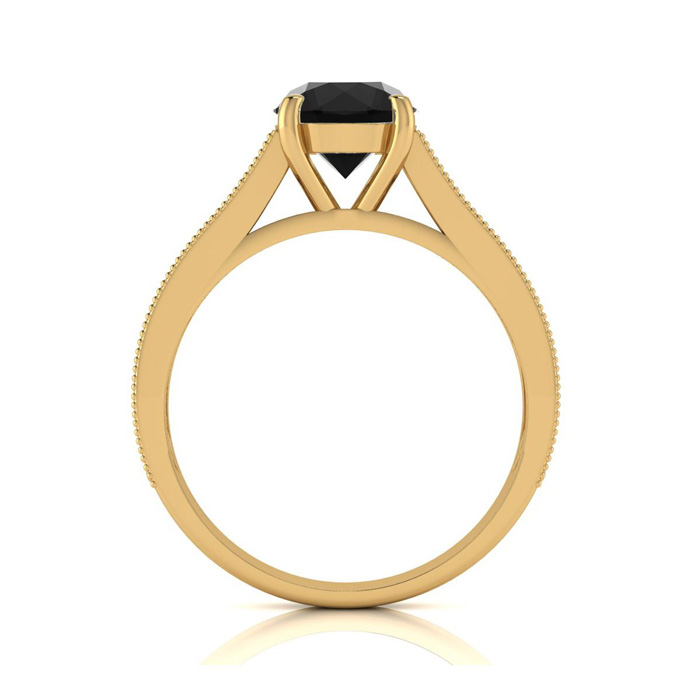 2 Carat Round Shape Black Moissanite Engagement Ring In 14 Karat Yellow Gold