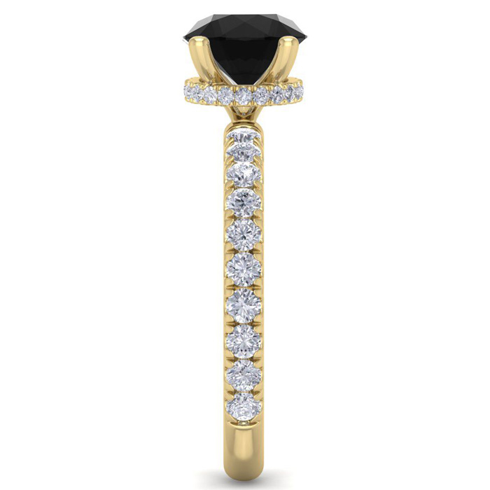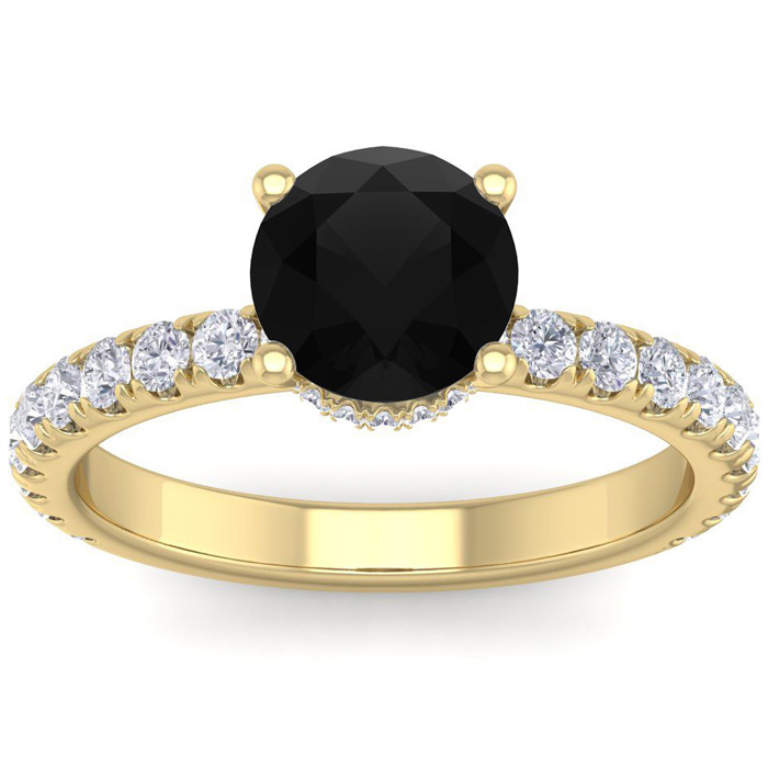 2 Carat Round Shape Hidden Halo Black Moissanite Engagement Ring In 14 Karat Yellow Gold
