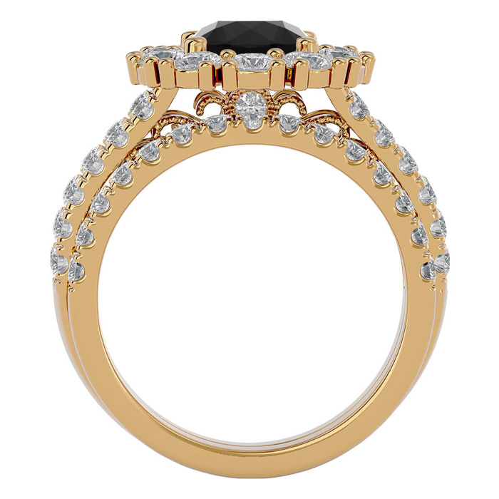 3 1/2 Carat Black Moissanite Bridal Set In 14 Karat Yellow Gold
