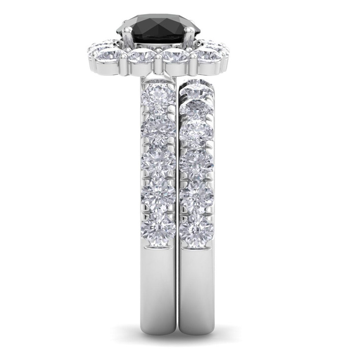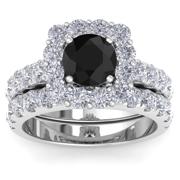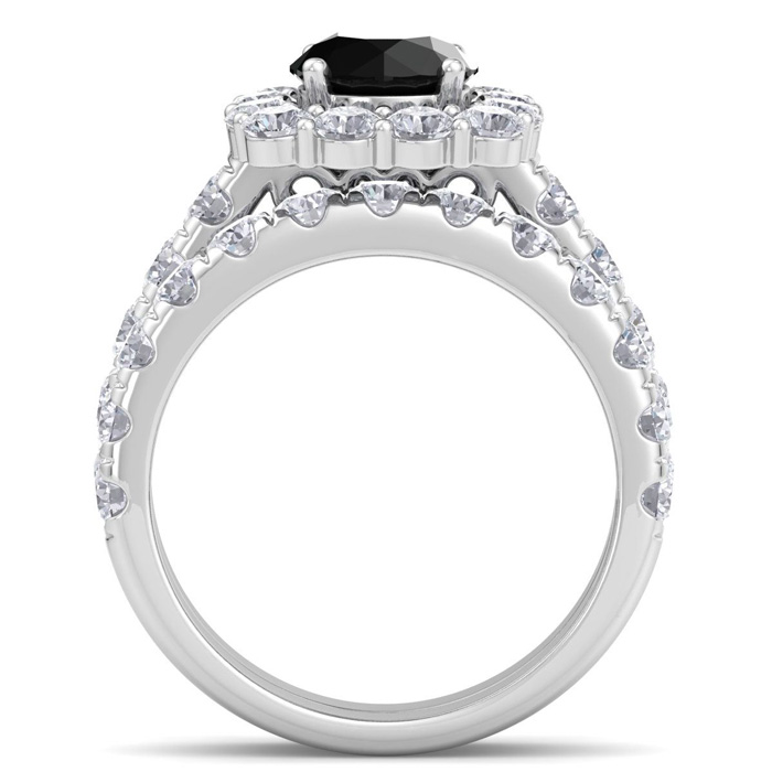 3 1/2 Carat Halo Black Moissanite Bridal Set In 14K White Gold