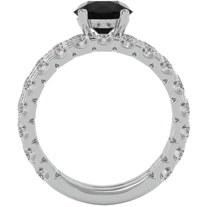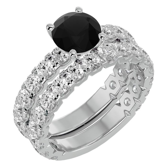 3 1/2 Carat Round Black Moissanite Bridal Set In 14 Karat White Gold