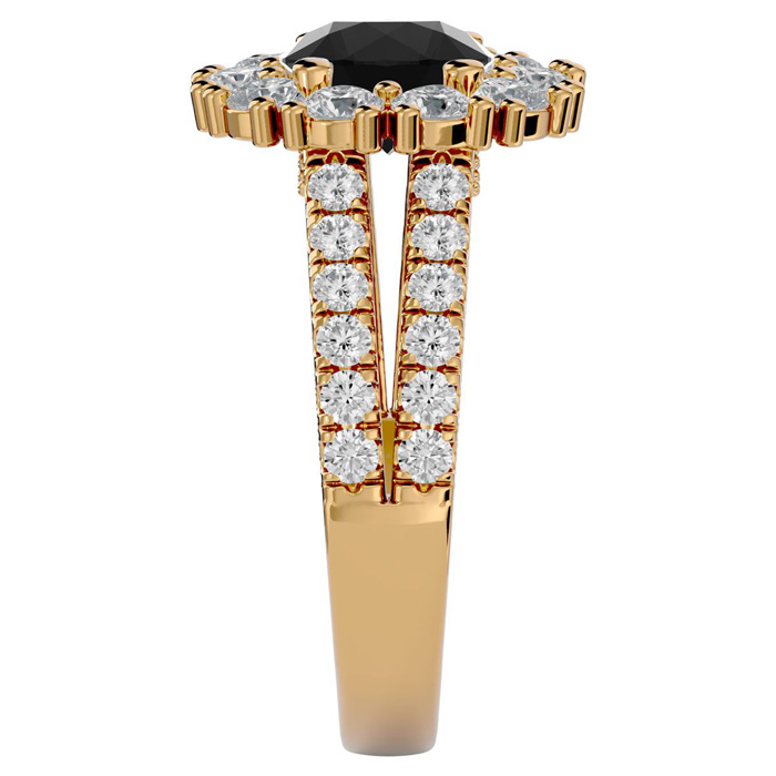 3 Carat Black Moissanite Halo Engagement Ring In 14 Karat Yellow Gold