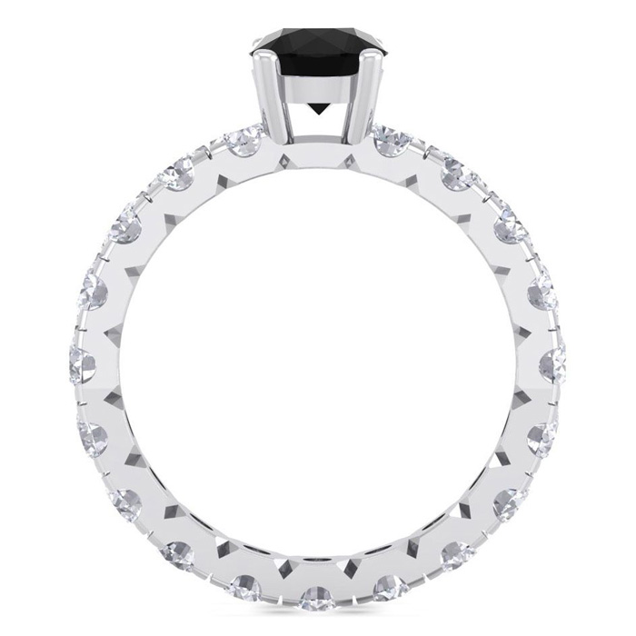 3 Carat Round Shape Black Moissanite Eternity Engagement Ring In 14 Karat White Gold