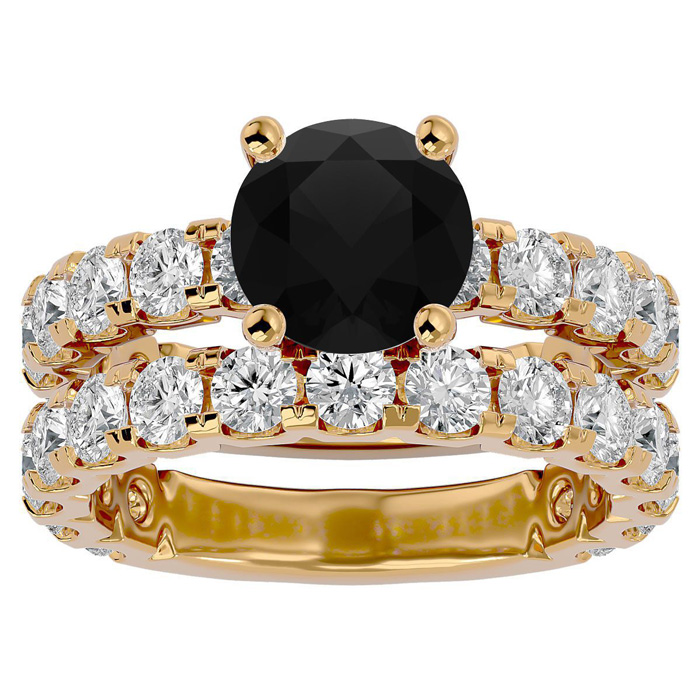 5 Carat Round Black Moissanite Bridal Set In 14 Karat Yellow Gold