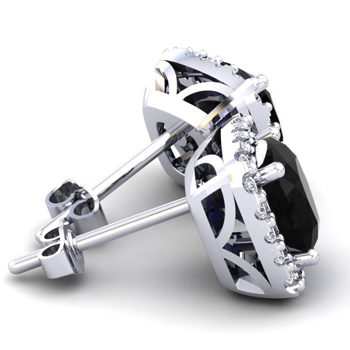 2 1/4 Carat Cushion Cut Black Onyx and Halo Diamond Earrings In Sterling Silver