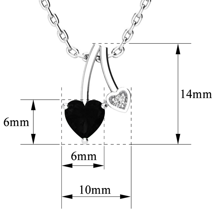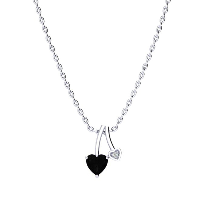1/2 Carat Heart Shaped Black Onyx and Diamond Necklace In Sterling Silver With 18 Inch Chain