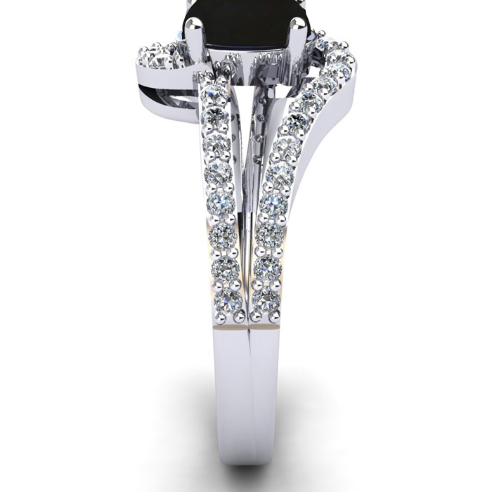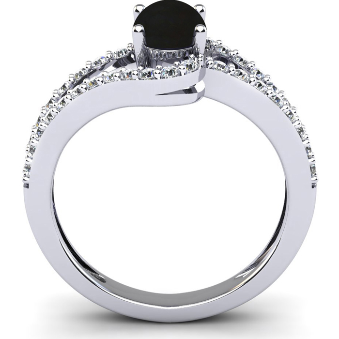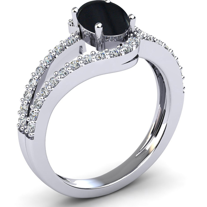 1.40 Carat Oval Shape Black Onyx and Fancy Diamond Ring In Sterling Silver