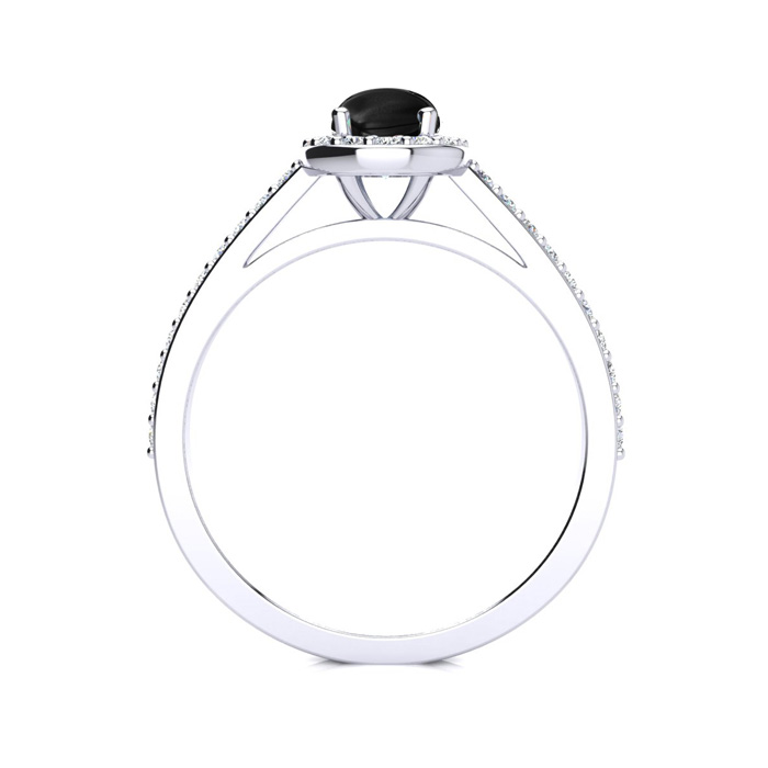 1 Carat Oval Shape Black Onyx and Halo Diamond Ring In Sterling Silver