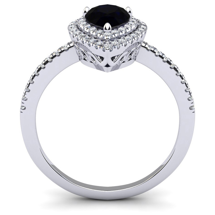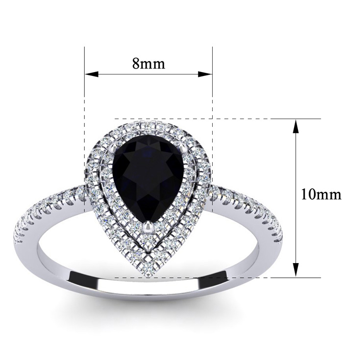 1 Carat Pear Shape Black Onyx and Double Halo Diamond Ring In Sterling Silver