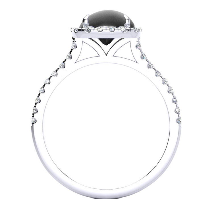 2 Carat Cushion Cut Black Onyx and Halo Diamond Ring In Sterling Silver