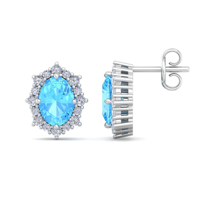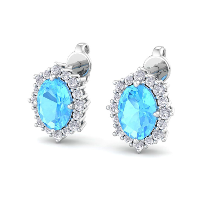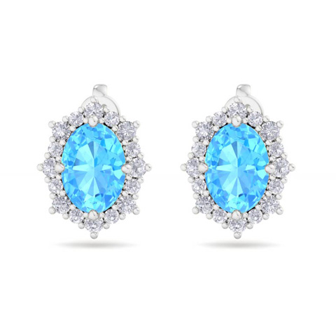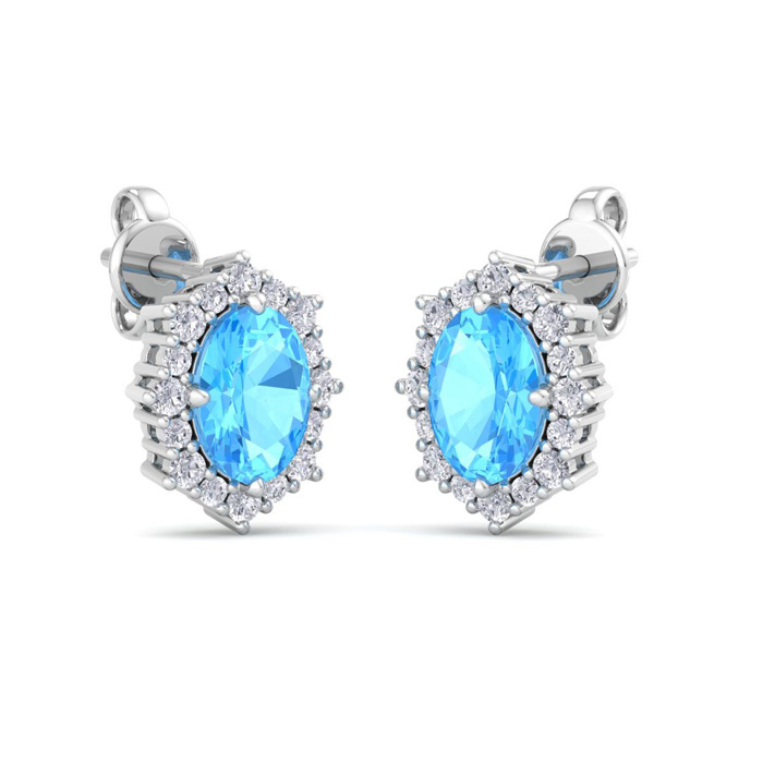 2 1/2 Carat Oval Shape Blue Topaz and Diamond Earrings In 14K White Gold
