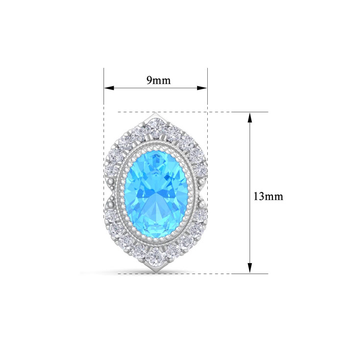 These gemstone earrings feature two 7x5mm oval shape blue topaz gemstones each weighing approximately 1 carat. There are 36 sparkling diamonds in I-J color, I1-I2 clarity totaling approximately 1/2 carat. Total carat weight is 2 1/2 Carats. These earrings are in 14 karat white gold. *Retrograde Birthstones™ flips the idea of traditional birthstones. Wear your ½ birthday birthstone, your Retrograde Birthstone, “The Birthstone For Your Bad Side™.