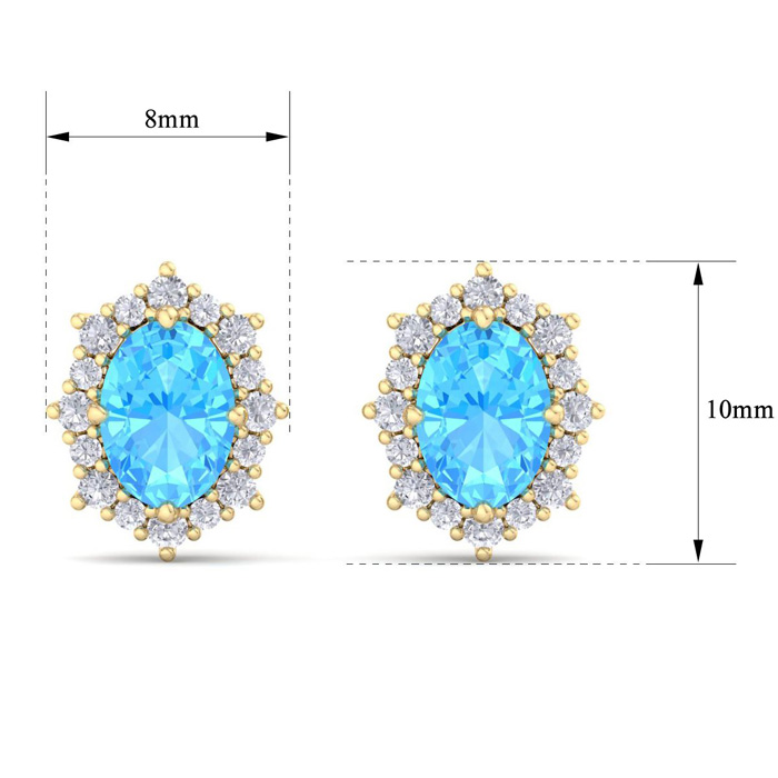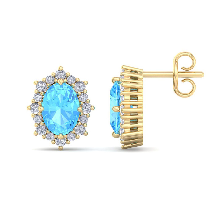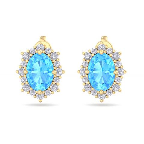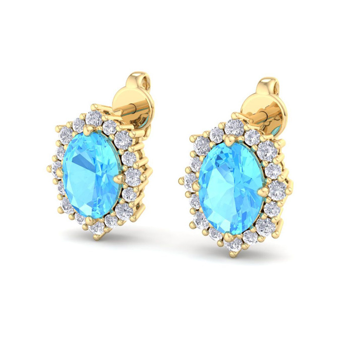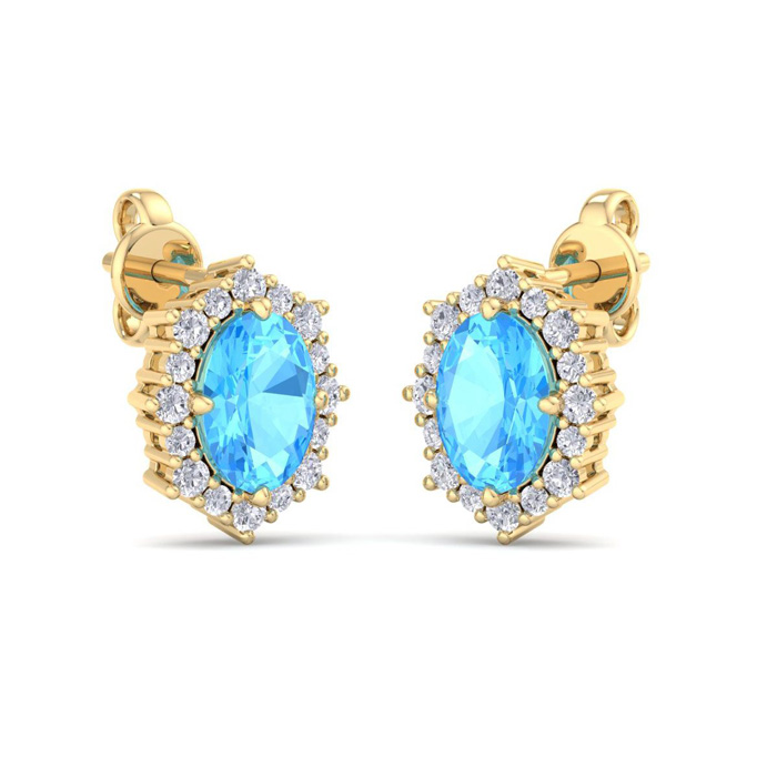 2 1/2 Carat Oval Shape Blue Topaz and Diamond Earrings In 14K Yellow Gold