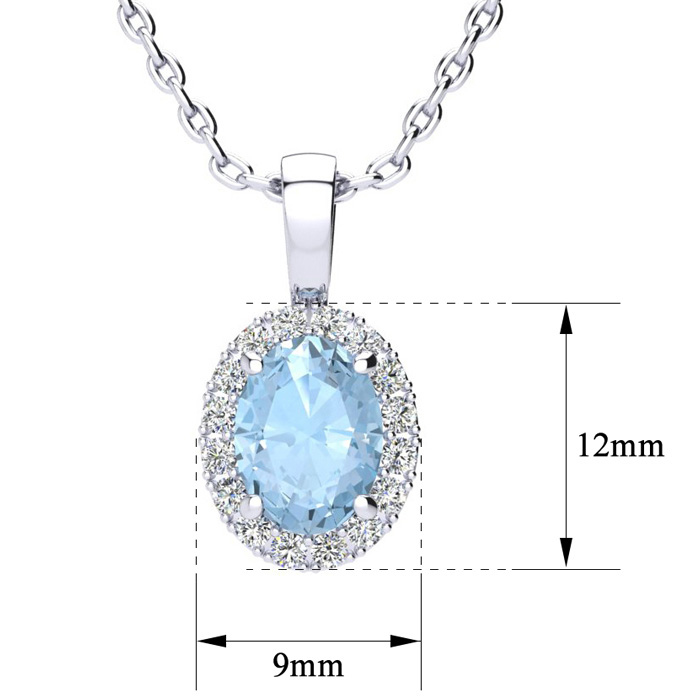 1 1/4 Carat Oval Shape Blue Topaz and Halo Diamond Necklace In Sterling Silver With 18 Inch Chain