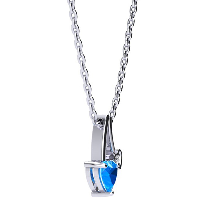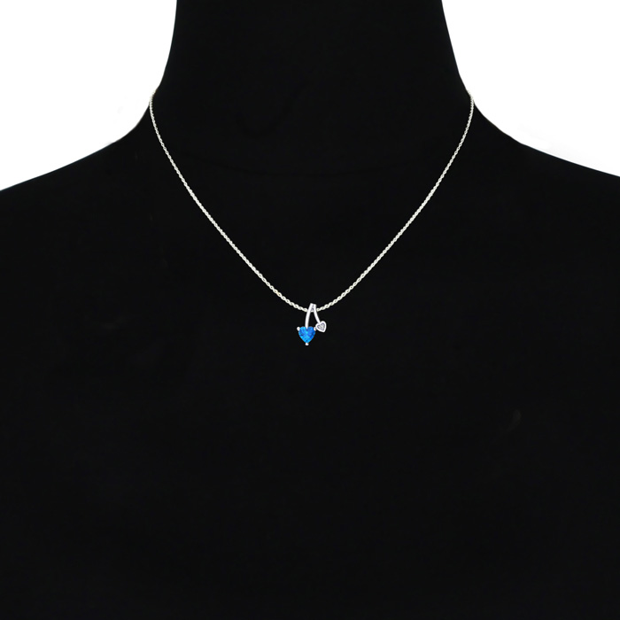 1/2 Carat Heart Shaped Blue Topaz and Diamond Necklace In Sterling Silver With 18 Inch Chain