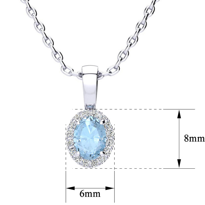 1/2 Carat Oval Shape Blue Topaz and Halo Diamond Necklace In Sterling Silver With 18 Inch Chain