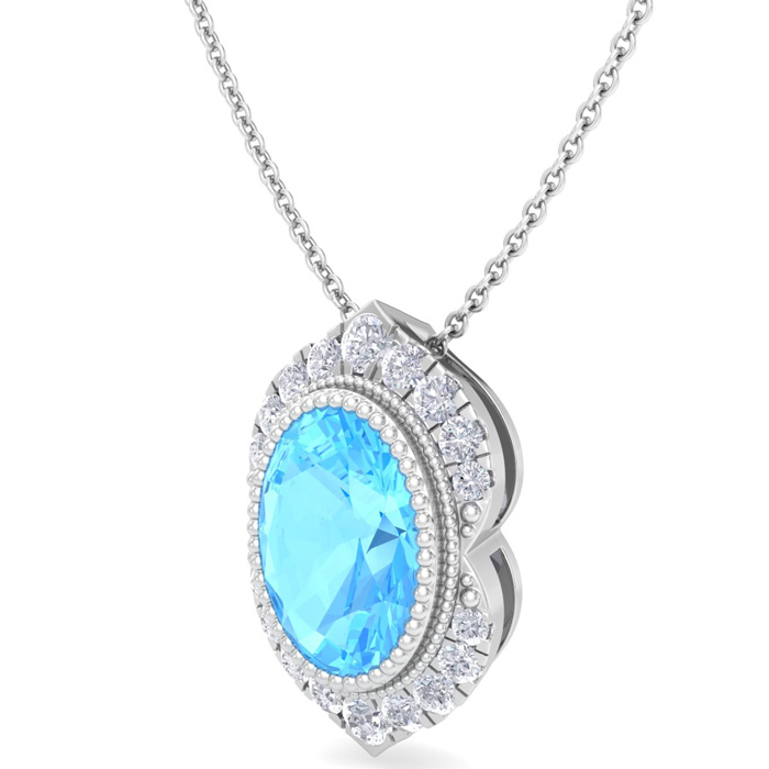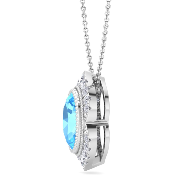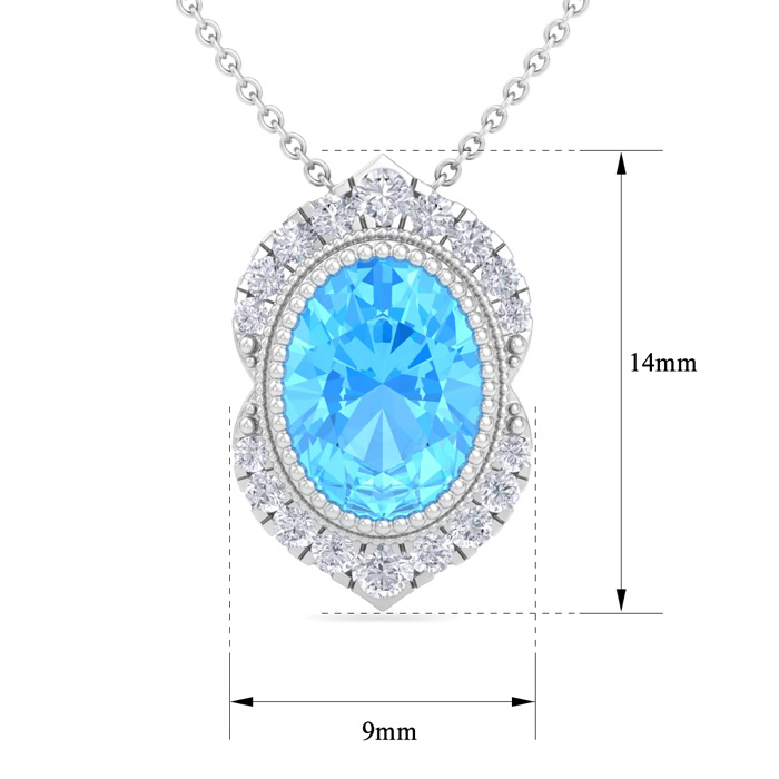 Retrograde Birthstones™ 1 3/4 Carat Oval Shape Blue Topaz and Diamond Necklace In 14K White Gold