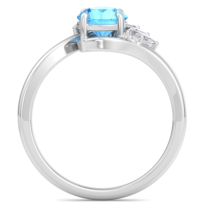 1 1/4 Carat Blue Topaz and Marquise Crown Halo Diamond Ring In 14K White Gold