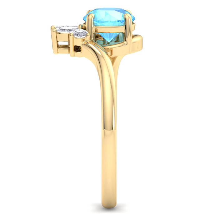 1 1/4 Carat Blue Topaz and Marquise Crown Halo Diamond Ring In 14K Yellow Gold
