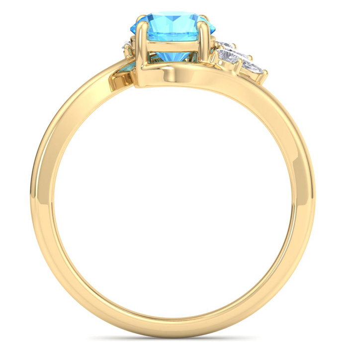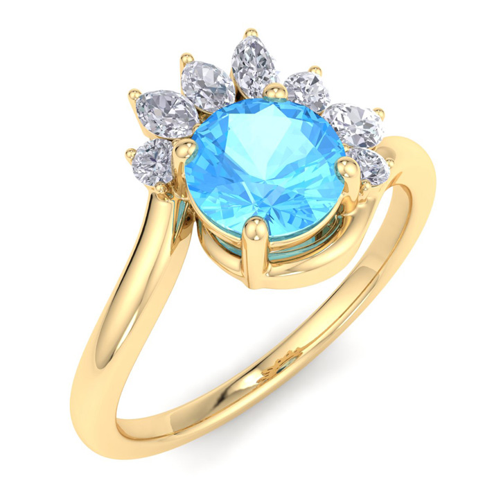 1 1/4 Carat Blue Topaz and Marquise Crown Halo Diamond Ring In 14K Yellow Gold