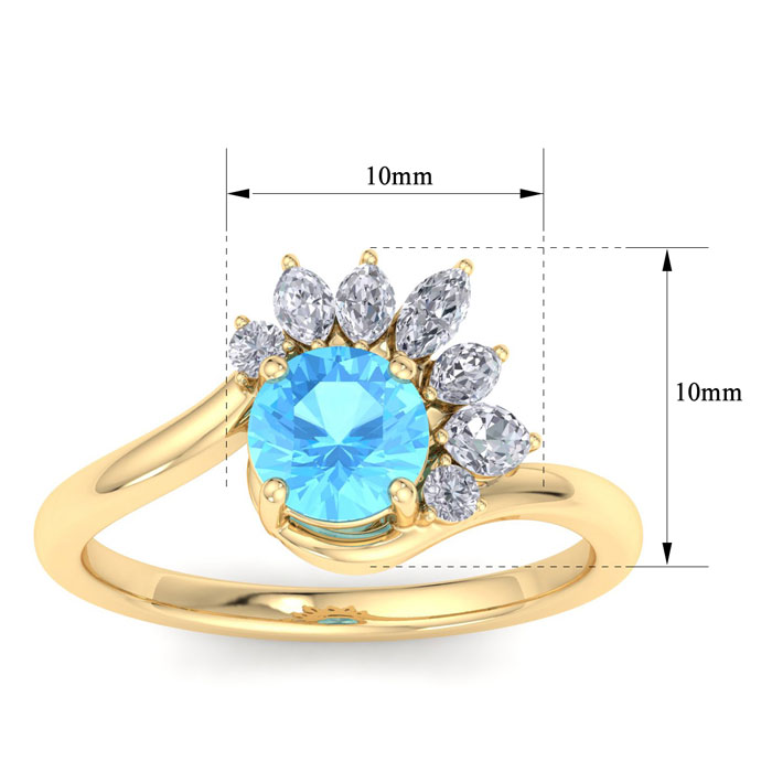 Retrograde Birthstones™ 1 1/4 Carat Blue Topaz and Marquise Crown Halo Diamond Ring In 14K Yellow Gold