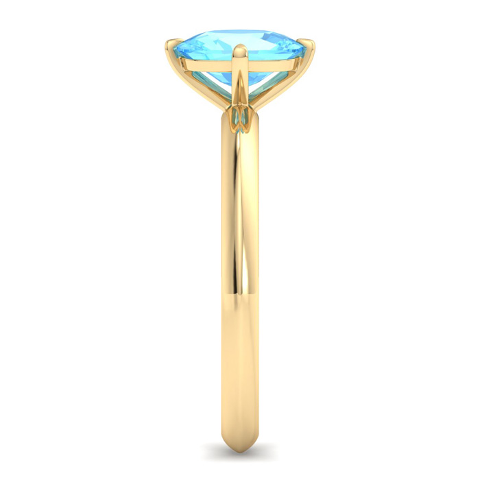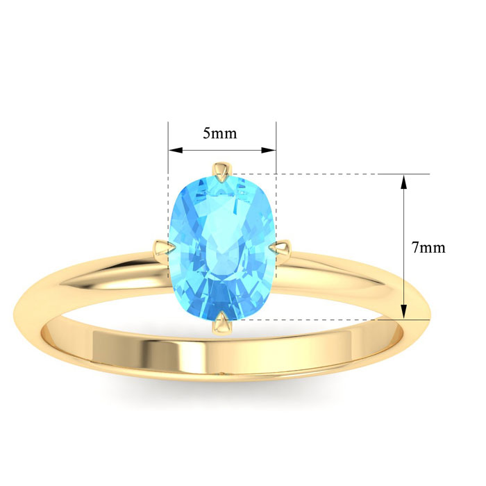 Retrograde Birthstones™ 1 Carat Antique Cushion Shape Blue Topaz Ring In 14K Yellow Gold