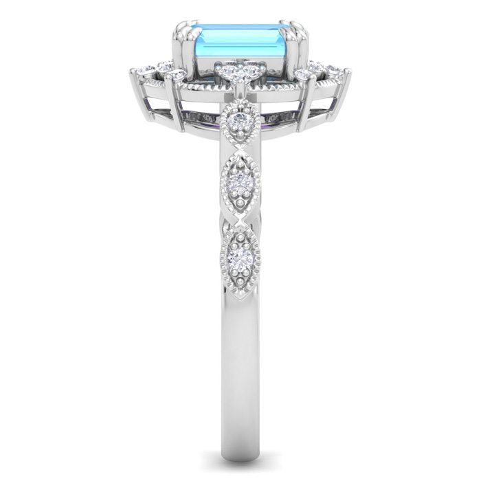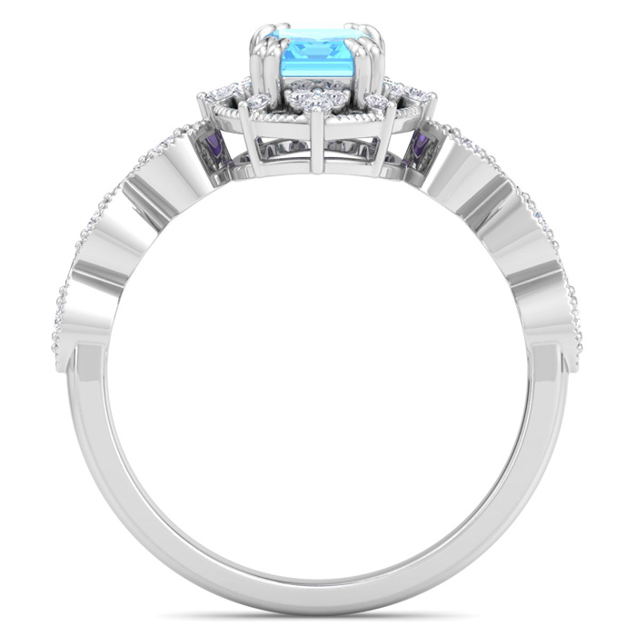 1 Carat Blue Topaz and Halo Diamond Ring In 14K White Gold