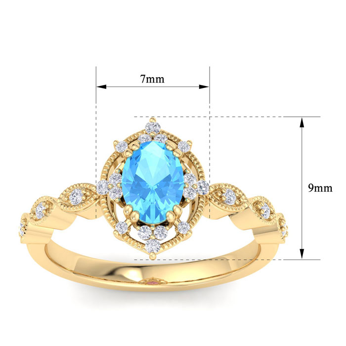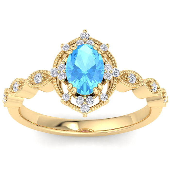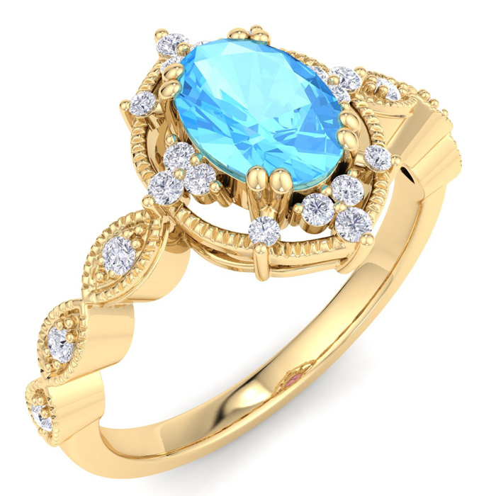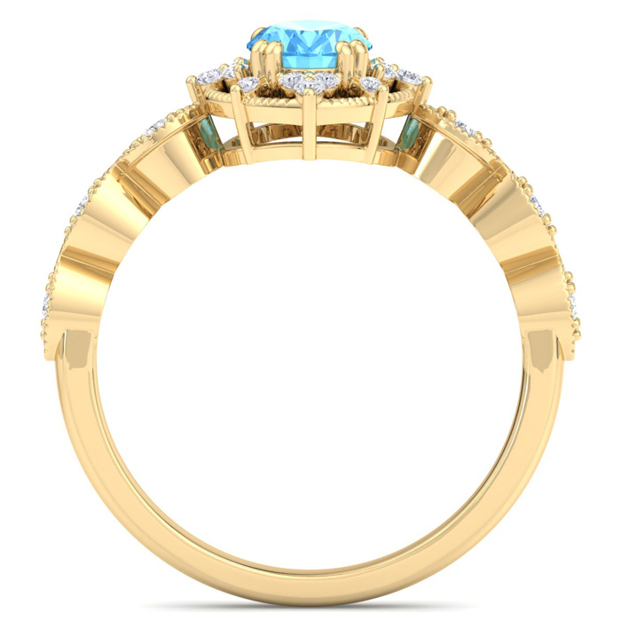 Retrograde Birthstones™ 1 Carat Blue Topaz and Halo Diamond Ring In 14K Yellow Gold