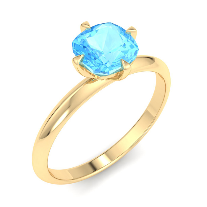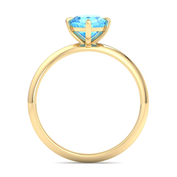 1 Carat Cushion Shape Blue Topaz Ring In 14K Yellow Gold