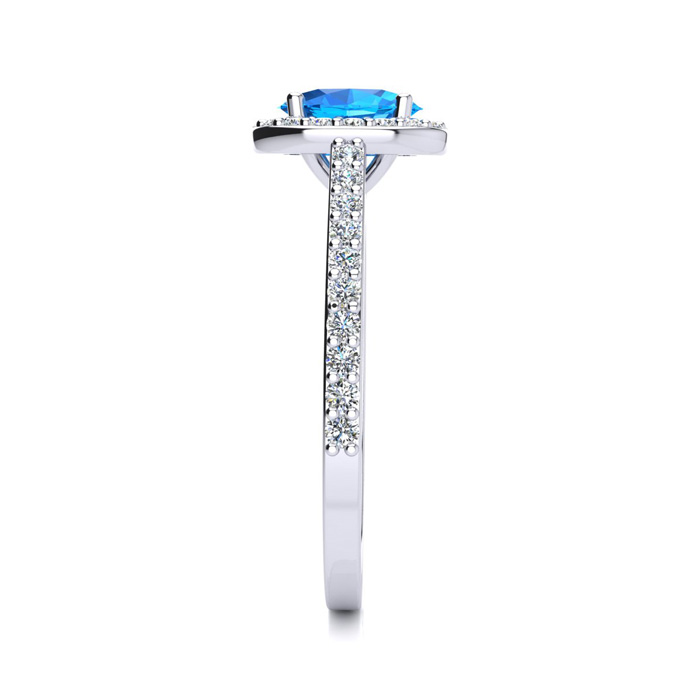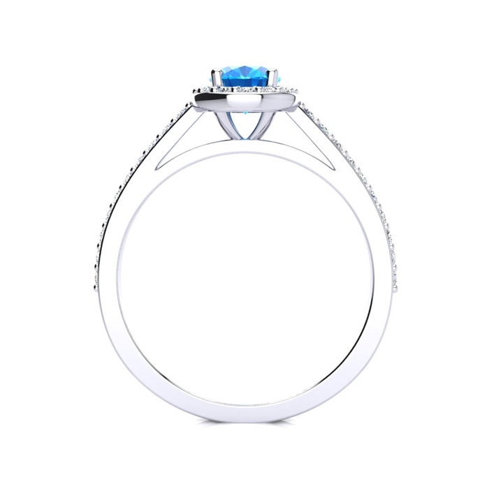 1 Carat Oval Shape Blue Topaz and Halo Diamond Ring In Sterling Silver