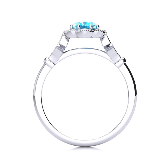 1 Carat Oval Shape Blue Topaz and Halo Diamond Ring In Sterling Silver