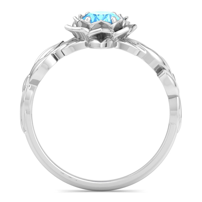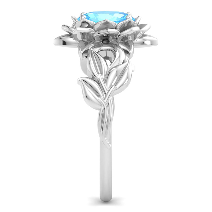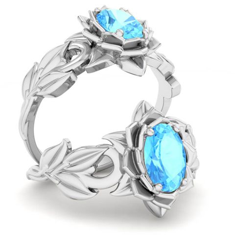 1 Carat Oval Shape Blue Topaz Ornate Ring In 14K White Gold