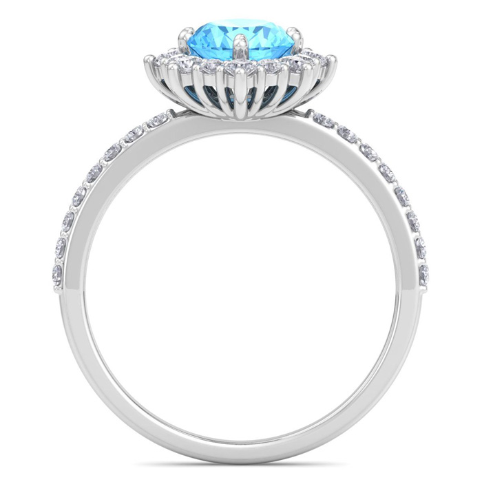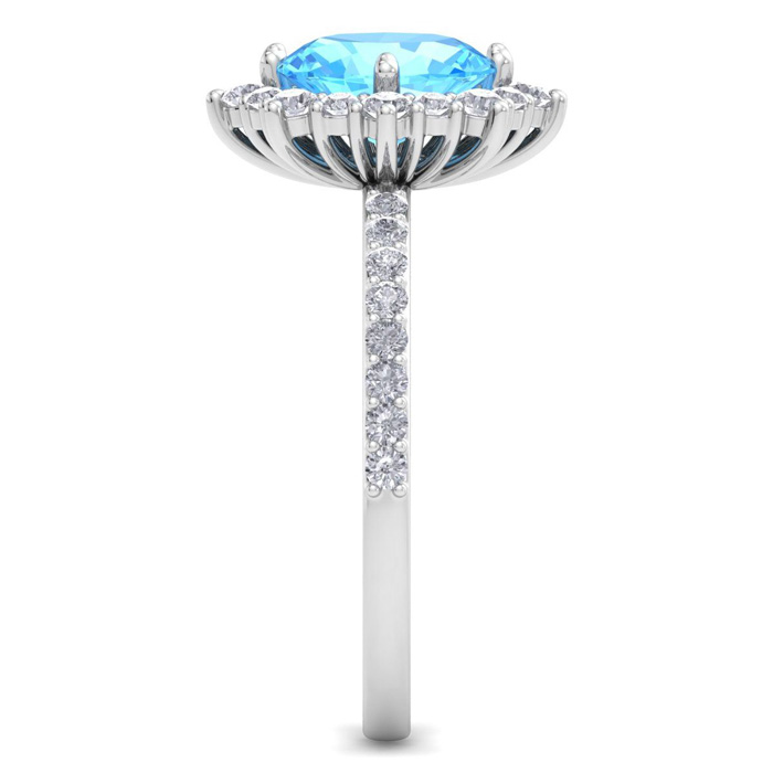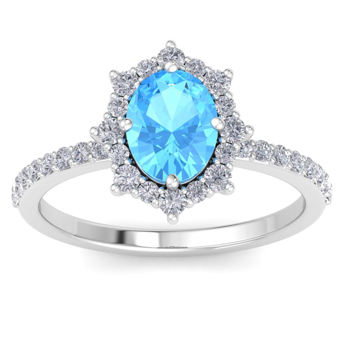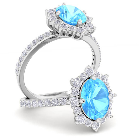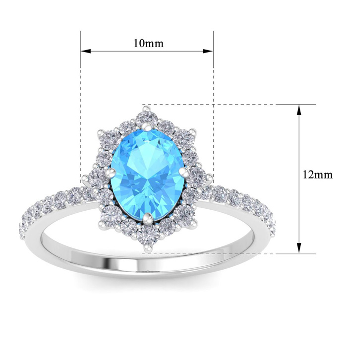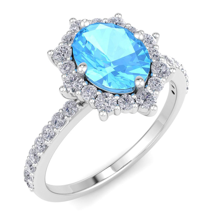 2 Carat Oval Shape Blue Topaz and Diamond Ring In 14K White Gold