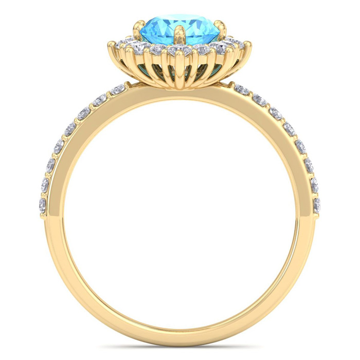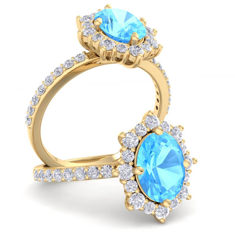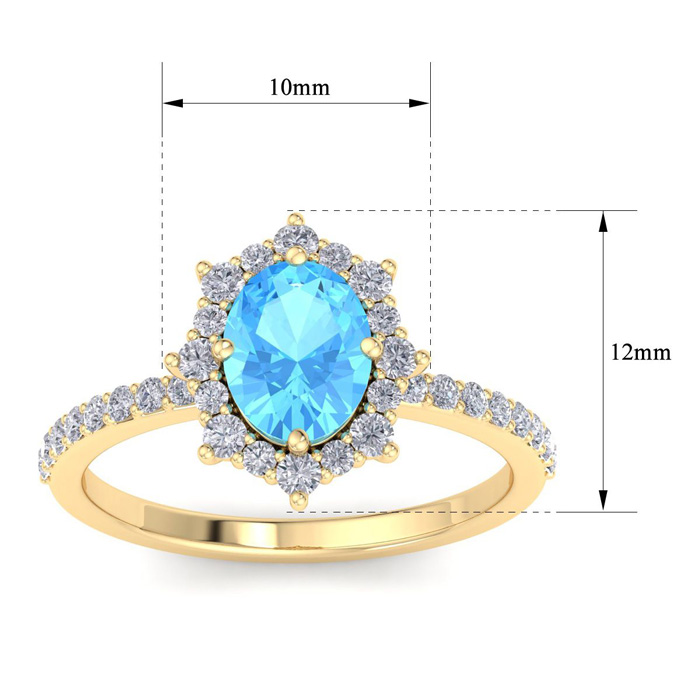 2 Carat Oval Shape Blue Topaz and Diamond Ring In 14K Yellow Gold