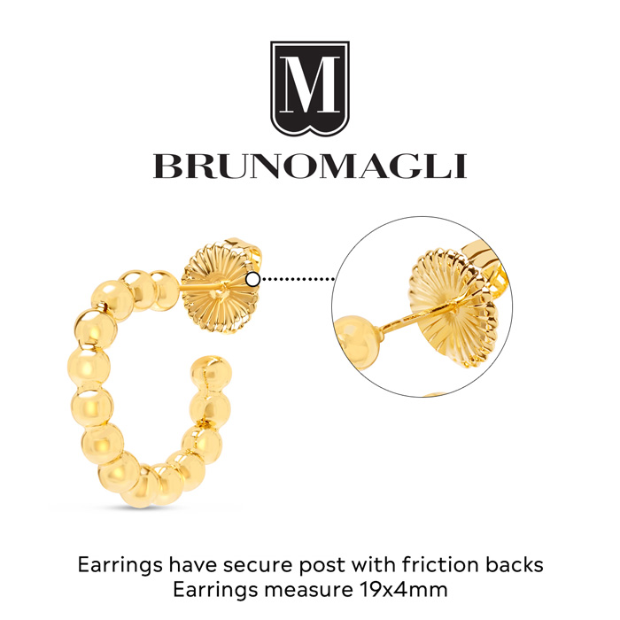 Bruno Magli Women’s Fashion Jewelry blends refined Italian craftsmanship with contemporary elegance, creating timeless accessories for the modern woman. Each piece is thoughtfully designed with high-quality materials, offering a balance of sophistication and style. From understated classics to bold statement designs, the collection adds a touch of luxury to any outfit, making Bruno Magli jewelry the perfect finishing accent for every occasion. These Bruno Magli Alessandra Gold Hoop Earrings dangle down 3/4 inch and have secure, post with friction backs. These earrings are finely crafted in yellow gold tone over brass metal.