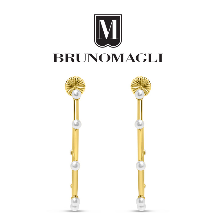 Bruno Magli Women’s Fashion Jewelry blends refined Italian craftsmanship with contemporary elegance, creating timeless accessories for the modern woman. Each piece is thoughtfully designed with high-quality materials, offering a balance of sophistication and style. From understated classics to bold statement designs, the collection adds a touch of luxury to any outfit, making Bruno Magli jewelry the perfect finishing accent for every occasion. These Bruno Magli Evelina Gold Hoop Earrings feature faux pearl accents and dangle down 2 inch and have secure, post with friction backs. These earrings are finely crafted in yellow gold tone over brass metal.