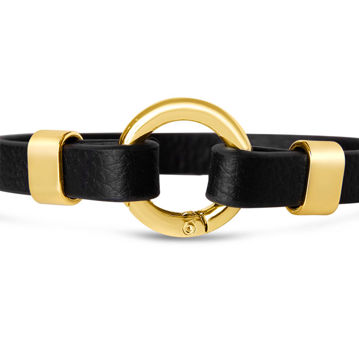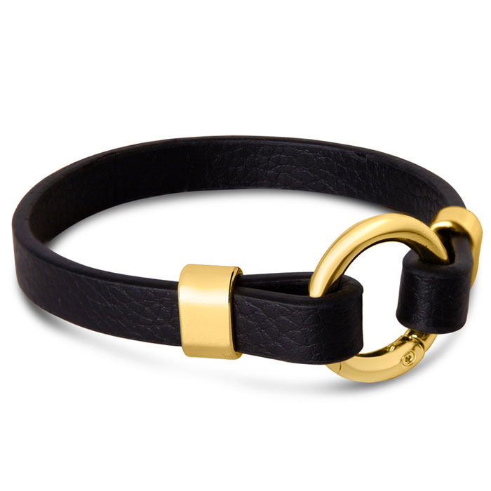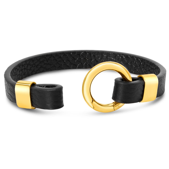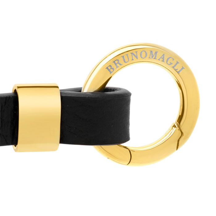 Bruno Magli men’s leather bracelets combine refined Italian craftsmanship with modern, understated style. Each piece is designed to offer a sophisticated finishing touch, blending premium materials and sleek details for a look that’s both timeless and effortlessly masculine. This Bruno Magli Mens Black Leather Bracelet, Gold has a ring clasp that is 3/4 inch in diameter. The leather portion of the bracelet is 10mm wide. Genuine leather and stainless steel - fits an 8 inch wrist.