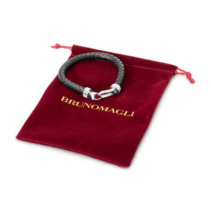 Bruno Magli men’s leather bracelets combine refined Italian craftsmanship with modern, understated style. Each piece is designed to offer a sophisticated finishing touch, blending premium materials and sleek details for a look that’s both timeless and effortlessly masculine. This Bruno Magli Mens Chorded Leather Bracelet, Black has a lobster-claw clasp. The leather portion of the bracelet is 9mm wide. Genuine leather and stainless steel - fits an 8 inch wrist.