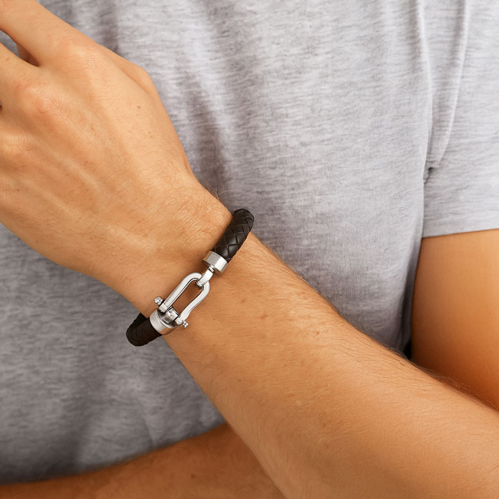 Bruno Magli men’s leather bracelets combine refined Italian craftsmanship with modern, understated style. Each piece is designed to offer a sophisticated finishing touch, blending premium materials and sleek details for a look that’s both timeless and effortlessly masculine. This Bruno Magli Mens Chorded Leather Bracelet, Mahogany has a lobster-claw clasp. The leather portion of the bracelet is 9mm wide. Genuine leather and stainless steel - fits an 8 inch wrist.