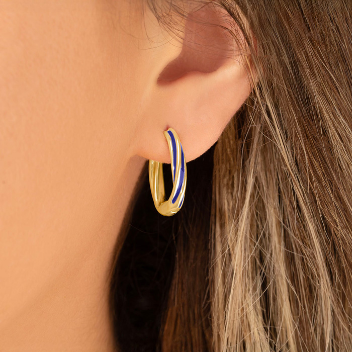 Bruno Magli Women’s Fashion Jewelry blends refined Italian craftsmanship with contemporary elegance, creating timeless accessories for the modern woman. Each piece is thoughtfully designed with high-quality materials, offering a balance of sophistication and style. From understated classics to bold statement designs, the collection adds a touch of luxury to any outfit, making Bruno Magli jewelry the perfect finishing accent for every occasion. These Bruno Magli Serena Gold Hoop Earrings, Blu, dangle down 3/4 inch and have secure, hidden snap backs. These earrings are finely crafted in yellow gold tone over brass metal.