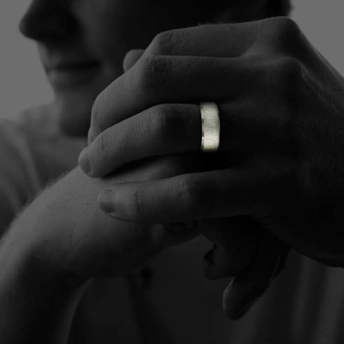this ring is perfect for a man who uses his hands alot or work. scratches are hidden if they occur. its also a very beautiful ring. love it--t.r.t..
