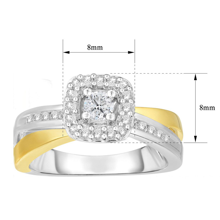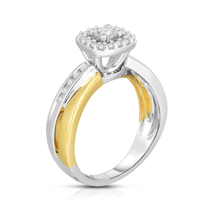 1/2 Carat Halo Diamond Engagement Ring In Two Tone Sterling Silver
