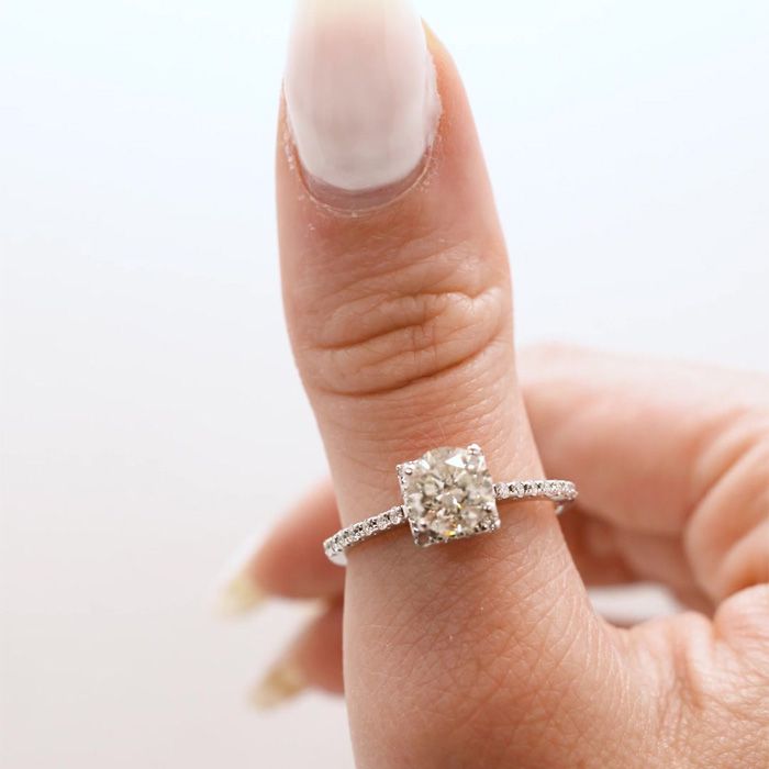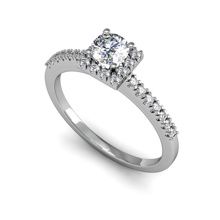 Very pretty ring. The diamonds did not disappoint and it catches every bit of light it can find. I would like to upgrade to the 1 carat. But for the money spent this is worth every penny.--Kim.