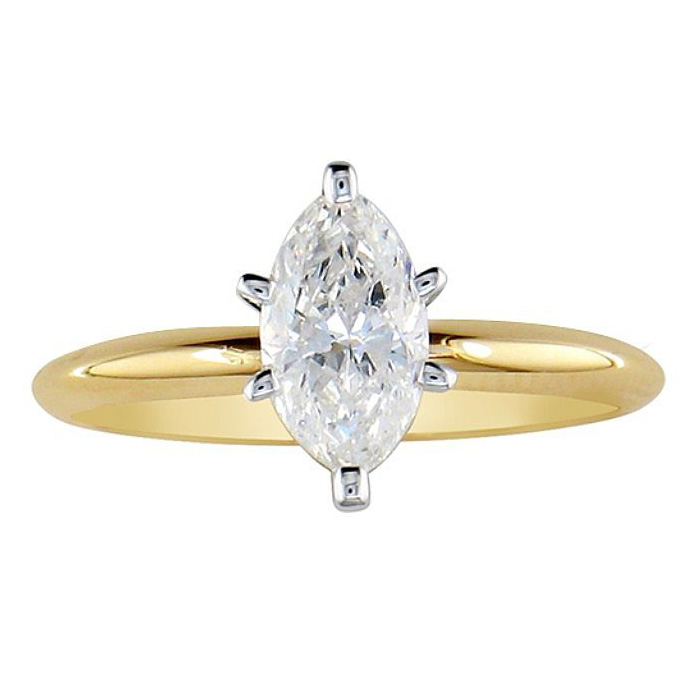 I selected this marquise-shaped diamond engagement ring in 14k yellow gold for my soon to be son-in-law who recently proposed to my daughter on her 21st birthday. It reminded me of my first diamond solitaire. It is perfect, and my daughter is so happy!--Ms. V from MD.