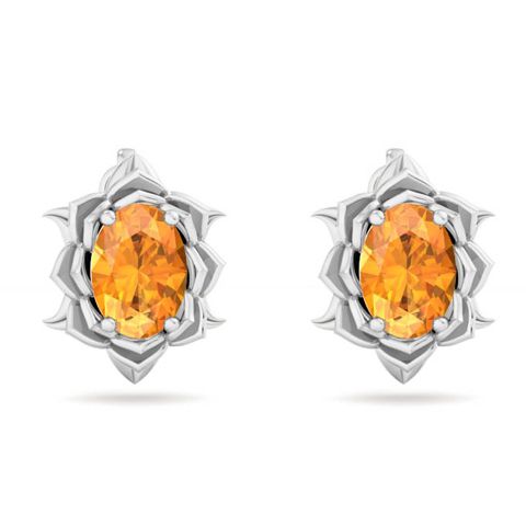 1 1/2 Carat Oval Shape Citrine Ornate Stud Earrings In 14K White Gold