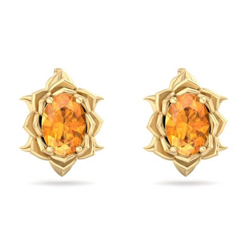 1 1/2 Carat Oval Shape Citrine Ornate Stud Earrings In 14K Yellow Gold