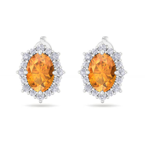 2 Carat Oval Shape Citrine and Diamond Earrings In 14K White Gold